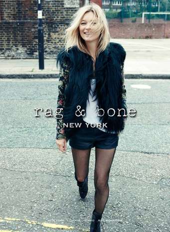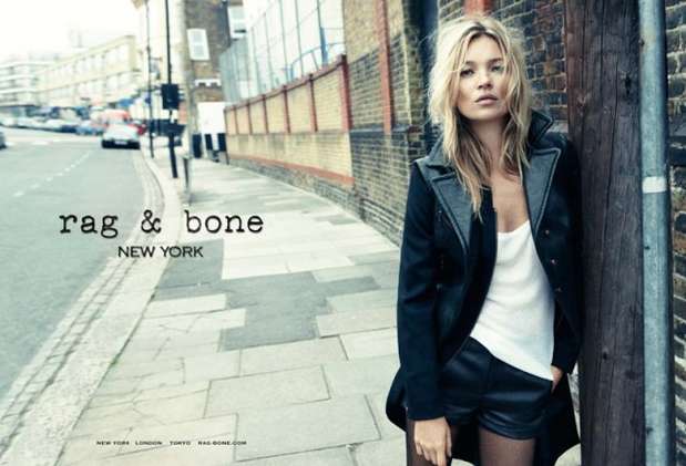 A top Kate Moss foi clicada pelo fotógrafo de moda Craig McDean nas ruas de Kentish Town, em Londres, para a primeira campanha impressa da Rag & Bone. Nas imagens, ela usa peças da coleção outono-inverno da grife.